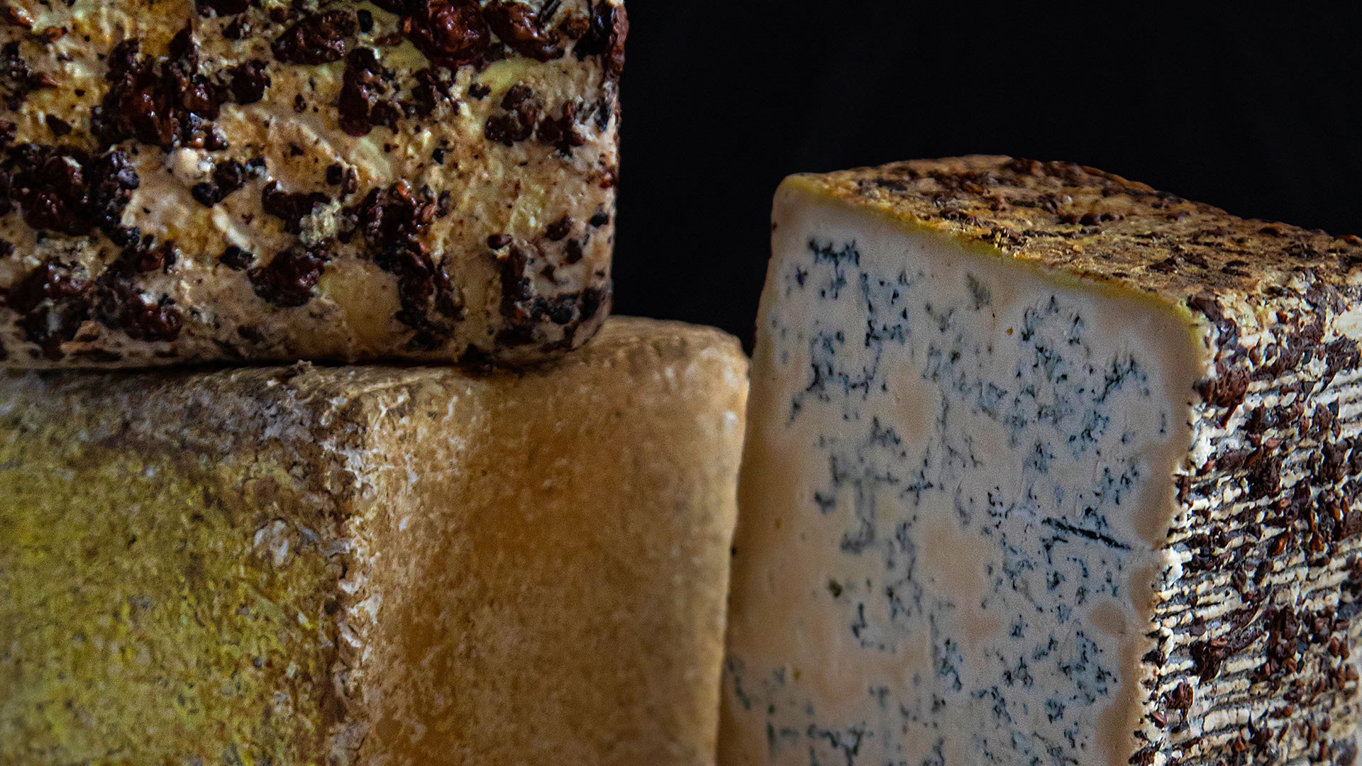 The typical greyish rind is slightly moist as a result of contact with the Moscato grape marc from the Eligio Magri winery, which also visually characterises this cheese with the presence of grapes.