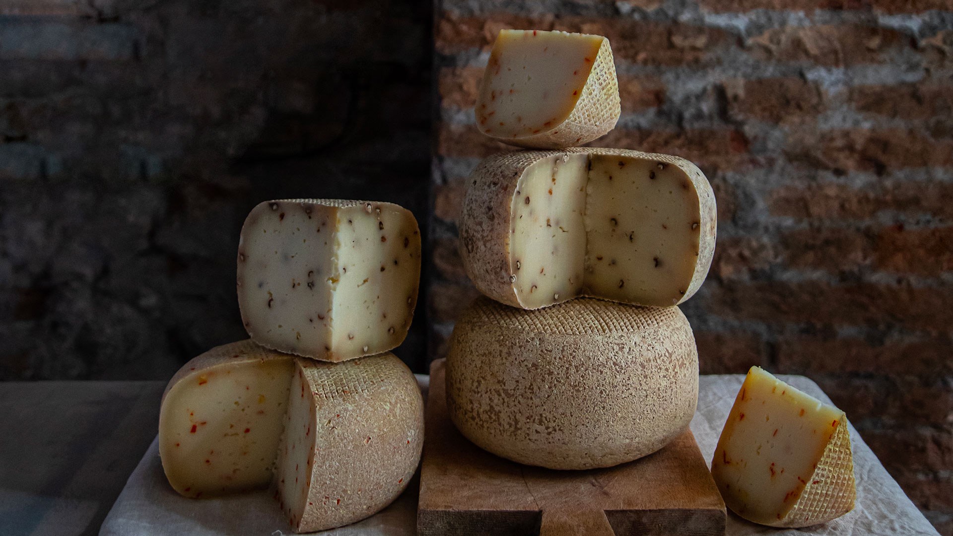 Fromage au lait de bufflonne de type caciotta à pâte crue, d’une forme sphérique irrégulière, avec une croûte rugueuse et fine, il est produit avec trois épices différentes (piment, graines de fenouil, poivre noir), qu’on peut voir sur la croûte. La pâte, d’une consistance moyenne et d’une couleur jaune, est parsemée d’épices. Trous clairsemés et petits. Arôme délicat de lait, caractérisé par la saveur des épices que l’on distingue clairement.